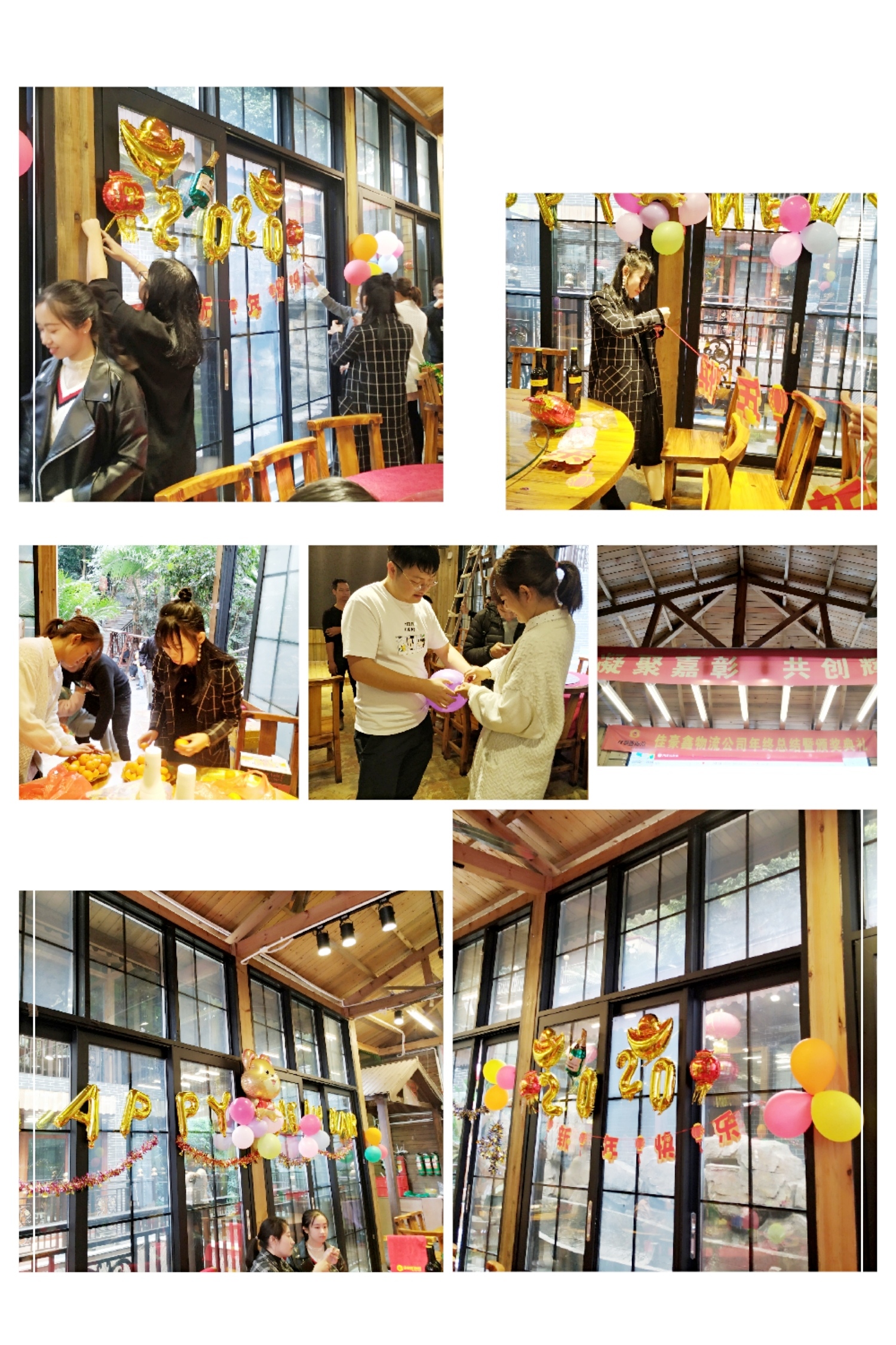 各位小伙伴提前布置年會現場中