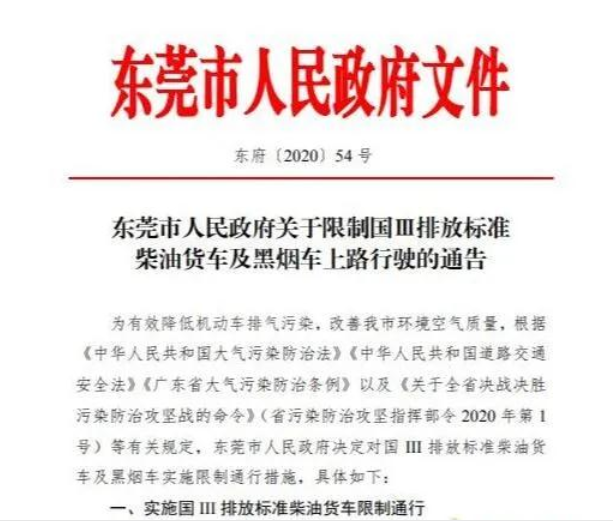除高速公路外,全天禁止黑煙車在東莞市內道路通行。
